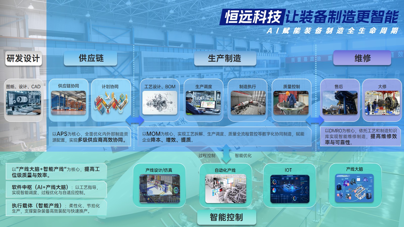 基于智能制造核心能力,恒遠(yuǎn)科技橫向延伸打造裝備全生命周期總集服務(wù),構(gòu)建產(chǎn)業(yè)鏈數(shù)字化協(xié)同平臺與覆蓋設(shè)備大修維護的全維運維保障體系,形成貫穿研發(fā)設(shè)計、供應(yīng)鏈協(xié)同、生產(chǎn)制造到售后維修的完整價值鏈。